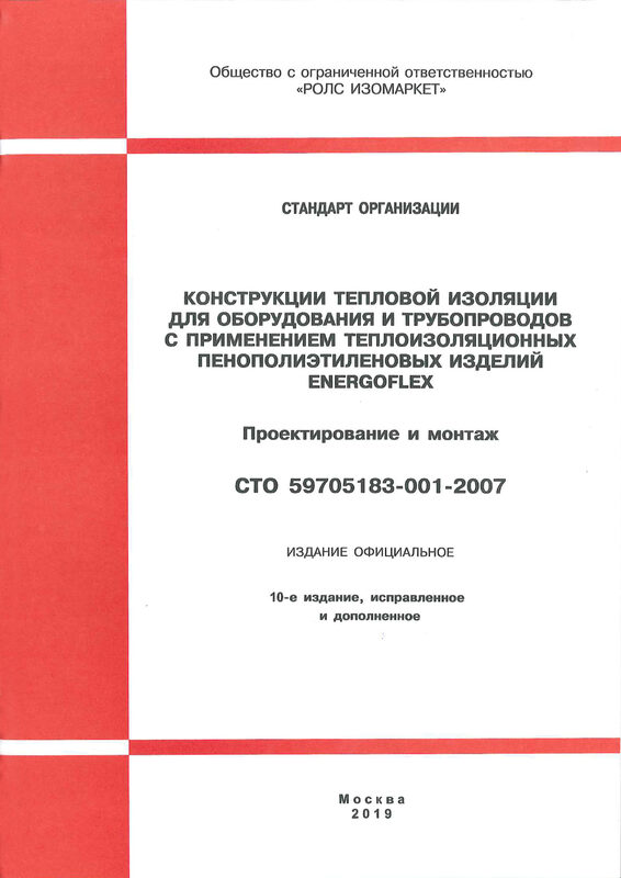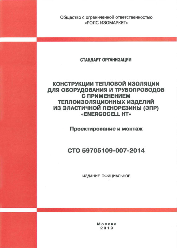 СТО 59705109-007-2014 Конструкции тепловой изоляции для оборудования и трубопроводов с применением теплоизоляционных изделий из эластичной пенорезины (ЭПР) «Energocell HT». Проектирование и монтаж.